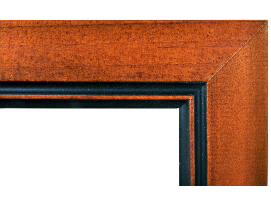 Dřevěný fotorámeček s viditelnou strukturou dřeva formátu 13x18 cm z ploché lišty s vroubkem u vnitřního okraje. Rámeček je lakován světle hnědým lakem s přechodem do černé. Na zadní straně je stojánek pro postavení dle potřeby na výšku nebo na šířku.