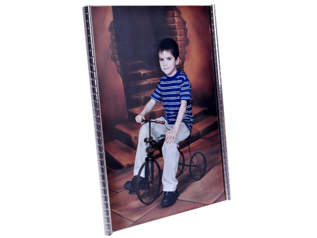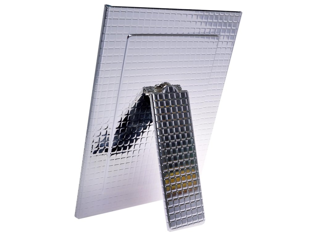 Krásný a elegantní rámeček na fotografie formátu 10x15 cm z vroubkovaného kovu a důkladným chromováním. Rámeček tvoří jednoduchou linku kolem vaší fotky. Rámeček má stojánek na postavení.